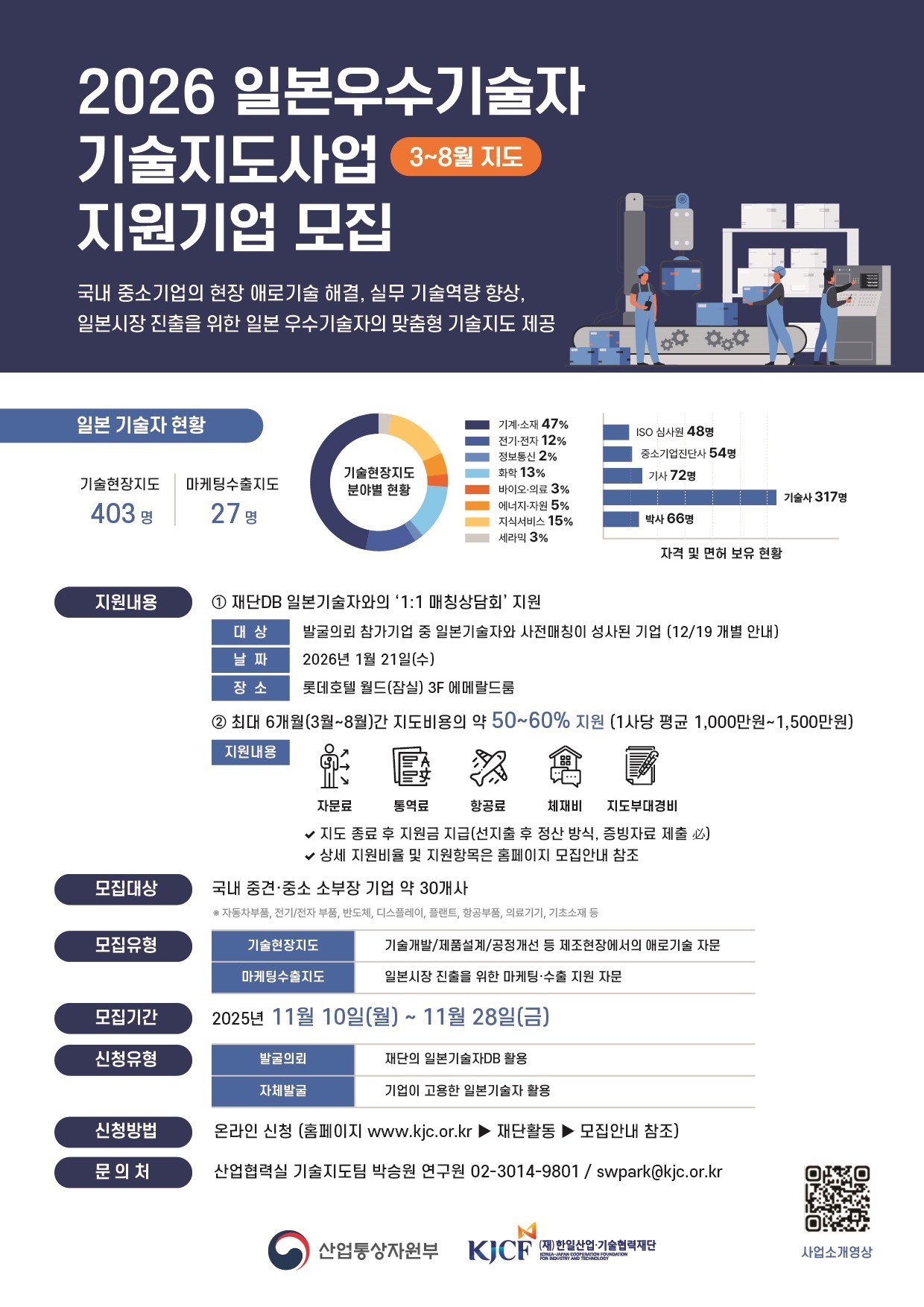 일본우수기술자 기술지도사업(3~8월 지도) 지원기업 모집