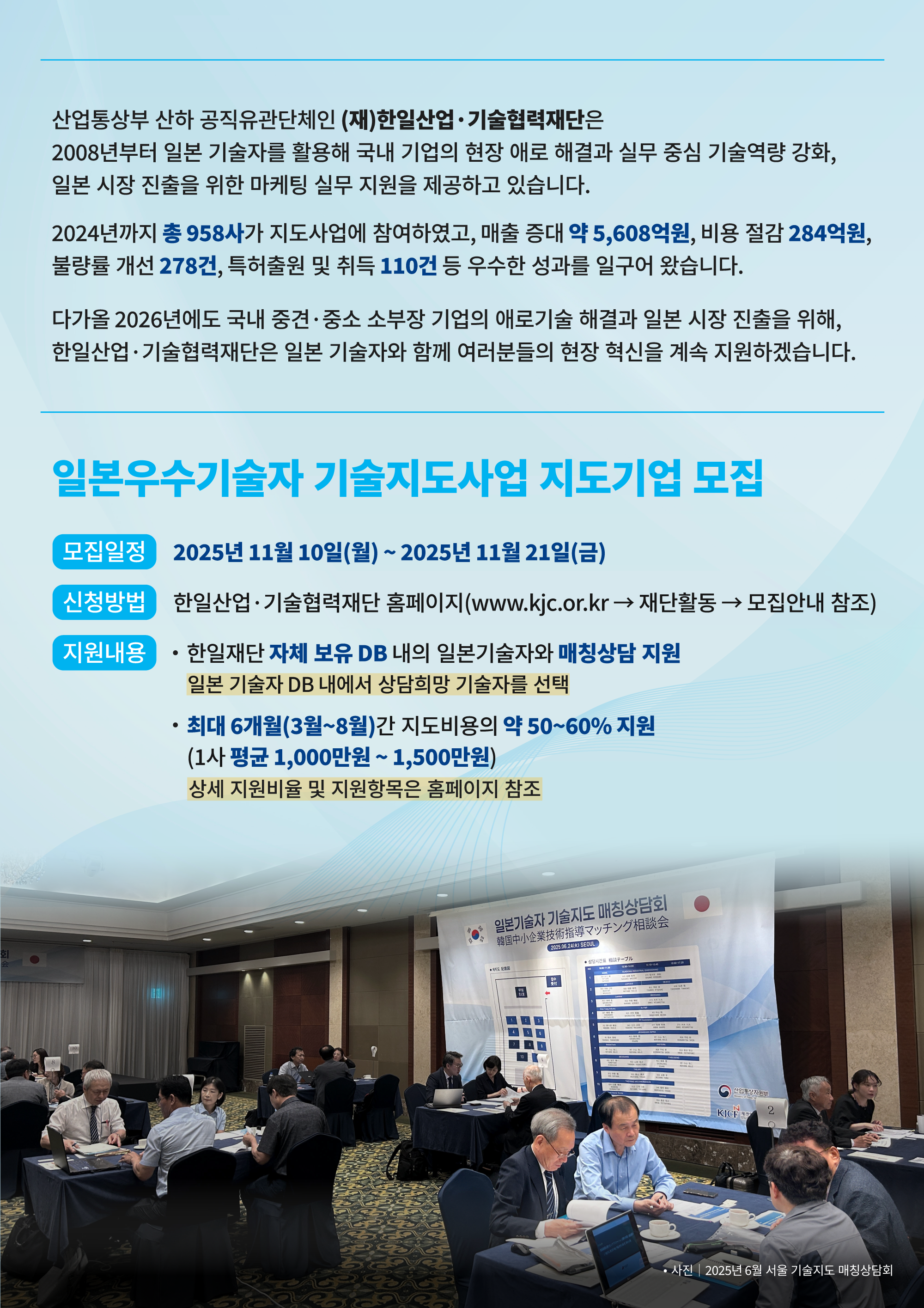 「2026 일본우수기술자 기술지도사업 1차 지도(3월~8월)」 한 눈에 보기